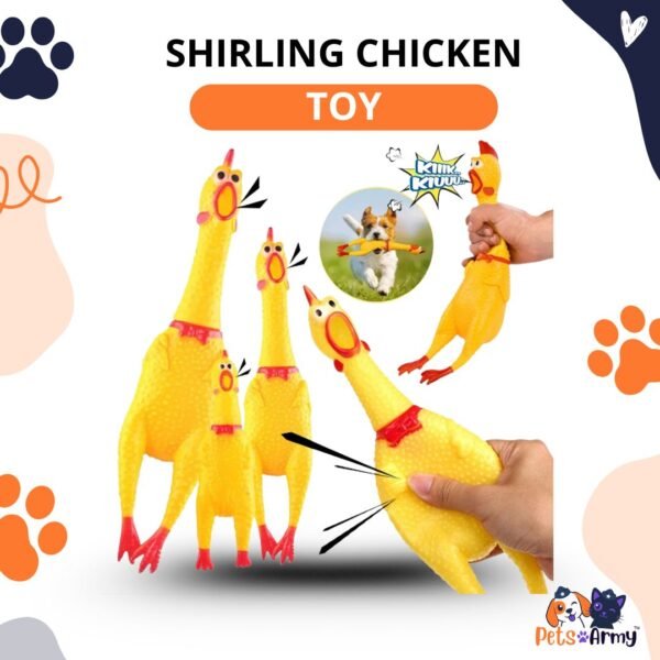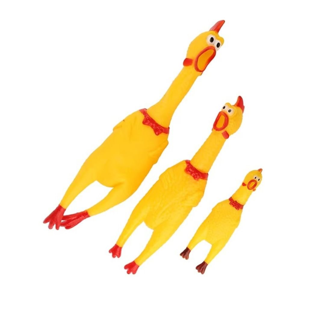Buy a screaming chicken squeaky toy for dogs, which is perfect for your pets. With this toy, add entertainment to your pet’s playtime. It’s a high-quality, eco-friendly rubber toy designed for dogs of all sizes. Crafted from non-toxic, pet-safe rubber, the toy is ideal for indoor and outdoor use. Its exaggerated chicken shape and shrilling sound provide sensory stimulation, helping reduce boredom and anxiety in pets. Whether used for training, interactive games, or solo play, this squeaky toy supports mental engagement and physical activity.